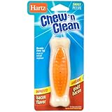 I grabbed two of these chew bones along with four other toys off off the grocery store shelf as some last minute Christmas Eve fun for my house full of rescue dogs & fosters. Two other toys from Hartz labeled "Tuff" were destroyed within a few minutes. Three days later, the Chew 'n Clean bones & rubber Tiny Dog ball remain. They are standing up to my toughest chewers and the dogs seem to really enjoy them. I will definitely buy them again.Read Best Reviews of Hartz Chew 'n Clean Small Bone, Bacon Flavor, Colors May Vary Here