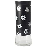 Arrived promptly. But the lid has dents in it wasnt to pleased about that not sure if it happened while being shipped or was shipped that way. Other than that it serves the purpose great and goes with my decor wonferfully.So disappointed!! The lid on this jar doesn't fit! It doesn't screw on and wont even stay ontoo big for the jar! The jar is glass and has a nice patterna shame they ruined it by putting this useless, cheap plastic lid on it! Don't waste your moneycause rememberwhen you get it and are disappointed YOU have to pay shipping to return it!!I was so disappointed when I received this product ! The jar itself is nice, heavy, cute; but, the lidis just a piece of crap. It does not screw in place, nor tighten to keep any treats fresh. The lid is made out of some cheap plastic that doesn't fit the neck of the jar. Too bad !