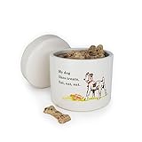 We just love our new dog treat canister. It is has the look of a retro piece which we really like a lot. It is ceramic-nice and sturdy!I'm in the dog business so I'm always looking for cute, different products. I love this treat container and my guests do too!