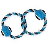 This toy lasted about 8 minutes with my two collie puppies before one ring came apart. the ring then unwound into three sperate colored ropes. the other ring lasted about another 5 minutes before doing the same thing. Terrible product. Stay away.The toy itself is fine. The rope is tied tightly and there are no sharp portions (which can happen with rope toys). My problem is that I have a Chihuahua/Jack Russel Terrier and she is terrified of this product! So, if you have a small dog (less than 10lbs, in my case) I would not recommend this.