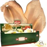 I ordered one of these cow ears for my dog, and they seem to be very high qualitymuch better than some other cheap, generic ones. It has a lighter texture than rawhide. However, mine had what seemed to be a blue tattoo on it. I'm assuming that was used for identification on the cow, not added during processing. Also, my dog would not chew this. I even smeared peanut butter on it, but he just licked that out of the crevices and then ignored the actual cow ear. But, my dog is the one who won't eat rawhide or bully sticks either. I'm guessing dogs who like these types of chews would love this. My dog is just a bit weird. So4 stars for quality; 1 for (picky) pet satisfaction