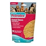 this is the only chew my dog will eat..they are clean and do not leave brown "baste" stains on carpet..keeps my pup's breath fresh.Buy Petrodex Dog Dental Chews Small Dog, 24-Count Now