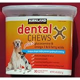 This is one product that works just as advertised. My 3 year-old Cocker spaniel had terrible breath issues and trying to brush her teeth is just a horrible experience and leaves her traumatized. This product has been a godsend. She absolutely loves these things and will chose them over her regular dog treats every time if given a choice. Her breath now is fine and her plaque appears to be reduced as well. It is much cheaper at Costco, a little over $12, so if you have a membership I strongly advise getting them at your local store.Read Best Reviews of Dental Chews Plus Glucosamine & Omega 3 & 6 Fatty Acids, Chicken Flavored Here