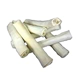 These are the best-built retriever rolls we've seen in years. They appear to be constructed all in one piece and are densely constructed. We have an 80-pound dog and a 105-pound dog, both avid chewers. The smaller dog will get only a few inches into one of these in a day -she'll chew, nap, chew, look out the window, chew ... and the bigger dog, who is more food-motivated, will have one of these last him at least a day. If there is one criticism -I wonder if the rawhide isn't a bit too thick, even for our large dogs. Time will tell.Read Best Reviews of Green Cow Dog Bones, 8" to 10" Natural Retriever, 20-Count Box Here