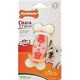 there is a seam in the center of this dura chew bone. In just a few hours my pooch had chewed it in half and could no longer hold onto it to chew. I am disappointed that the product was made this wayBuy Nylabone Dura Chew Plus Bone, Bacon Flavor, Regular Now