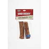 I usually buy the same good buddy raw hide in the larger size. I prefer the larger size because I have a golden that goes thru them quickly but they have become too expensive n hard to get. However I do love this rawhide made in the USA which are the only products I buy for my golden. The con would be that there is a coloring that can come off on a light colored carpet so either keep them in the kitchen until it is licked off or put a towel under them, it is worth it. For every and any bone you give your dog,mi would always be in the room just in case they start to choke or a piece gets stuck in their throat. It is great for their teeth and my golden loves them.