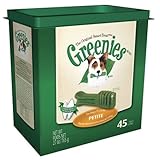 My dog, Pipr, loves the Greenies. She is a picky eater and ignores many different types of treats. However, when she hears the bag shake, she comes running. I hope the clean teeth effect is true, time will tell, we're only on our second bag thus far.Read Best Reviews of Greenies Petite size, Tub Pack, 45 ct. Here