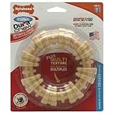 It lasted a whole ten minutes until the dog dropped it on the tile and it broke into three pieces.Read Best Reviews of Nylabone Dura Chew Plus Textured Ring Dog Chew Toy Here
