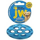 My dog (a 6lb yorkie/poodle mix) loved this toy but ripped it apart in less than an hour. Wish that it was more durable because he loved the thing but $6 for less than an hour of play is no good for me. Durability up and it gets 5 stars. It is actually lemon shaped like a football. Perfect size for his little mouth. About the size of two ping pong balls next to each other.Read Best Reviews of JW Pet Company Mini Hol-ee Football Dog Toy, Colors Vary Here