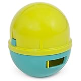 Ok, I am going to write first from my dog's perception of this toy. She is not interested in this treat toy, even with treats inside. She has 5 hidden treat toys that I change out frequently. Her favorite is a round ball that she rolls all over to get the treats out. She learned how to get the treats out right away from all of the toys, but she enjoys the challenge of the round ball because it takes longer for the treats to fall out.